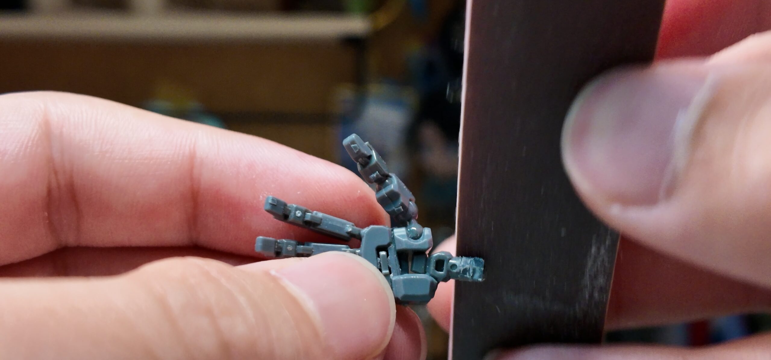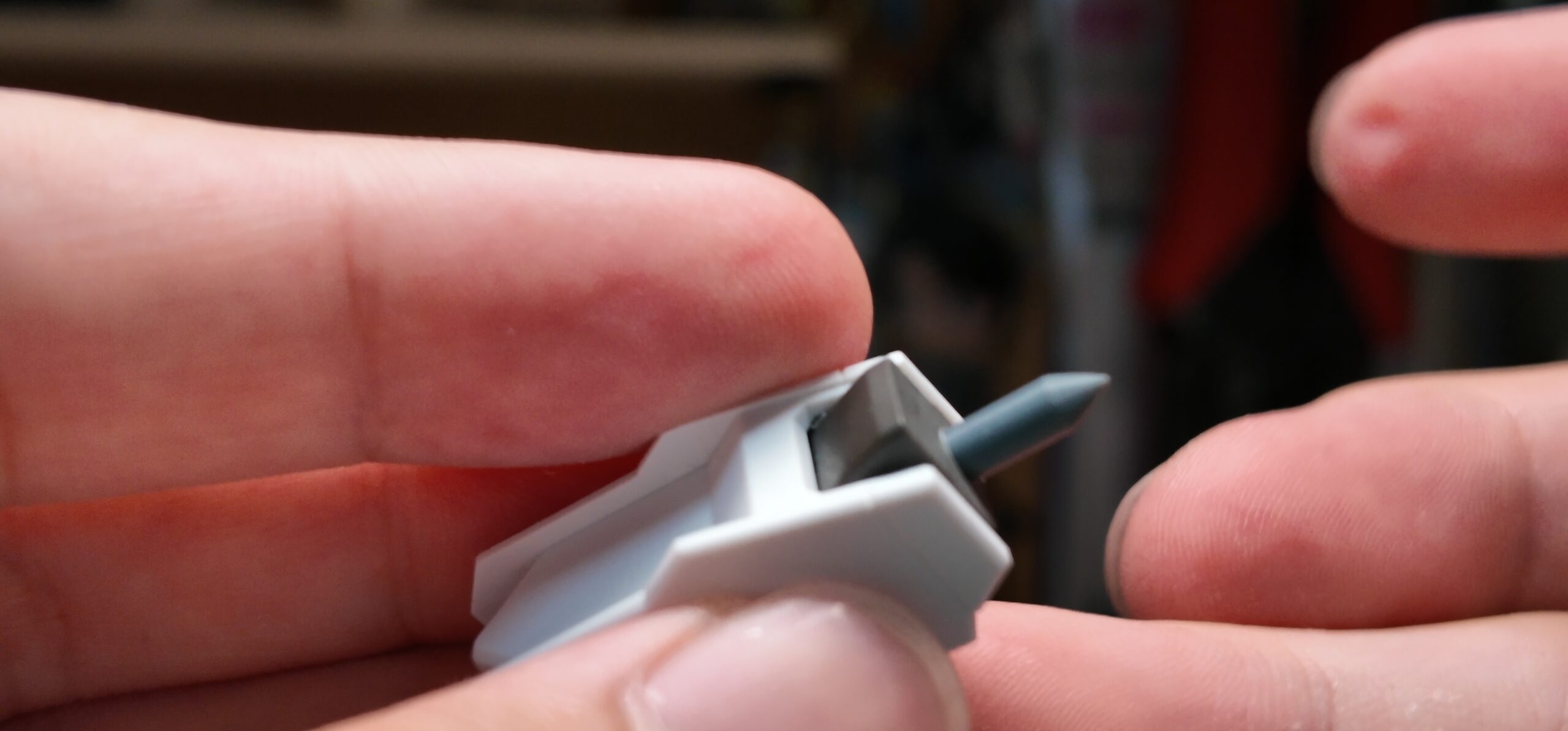 次に腕に付いてるパイルバンカーの再現。使用するのは1/100バルバトスの踵にランナーを尖らせたもの。