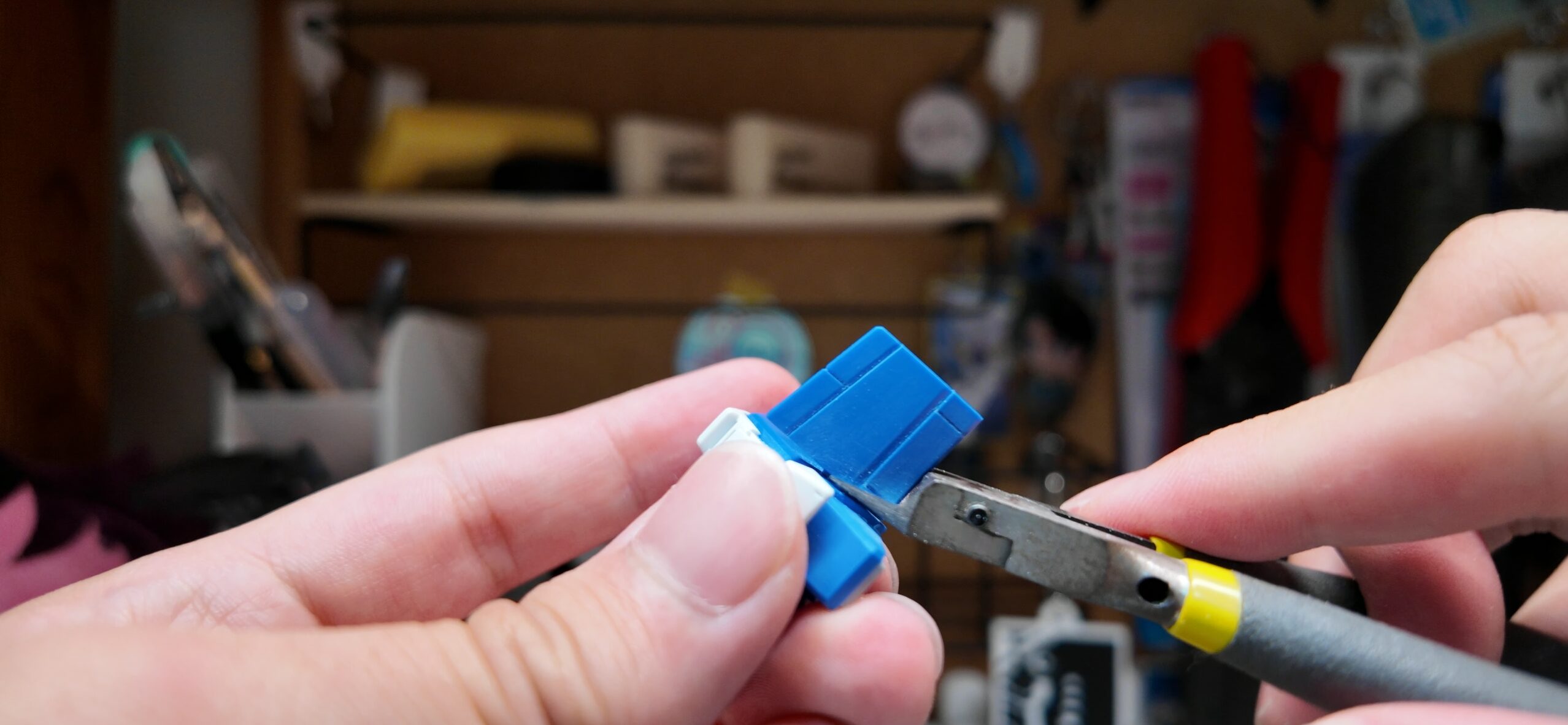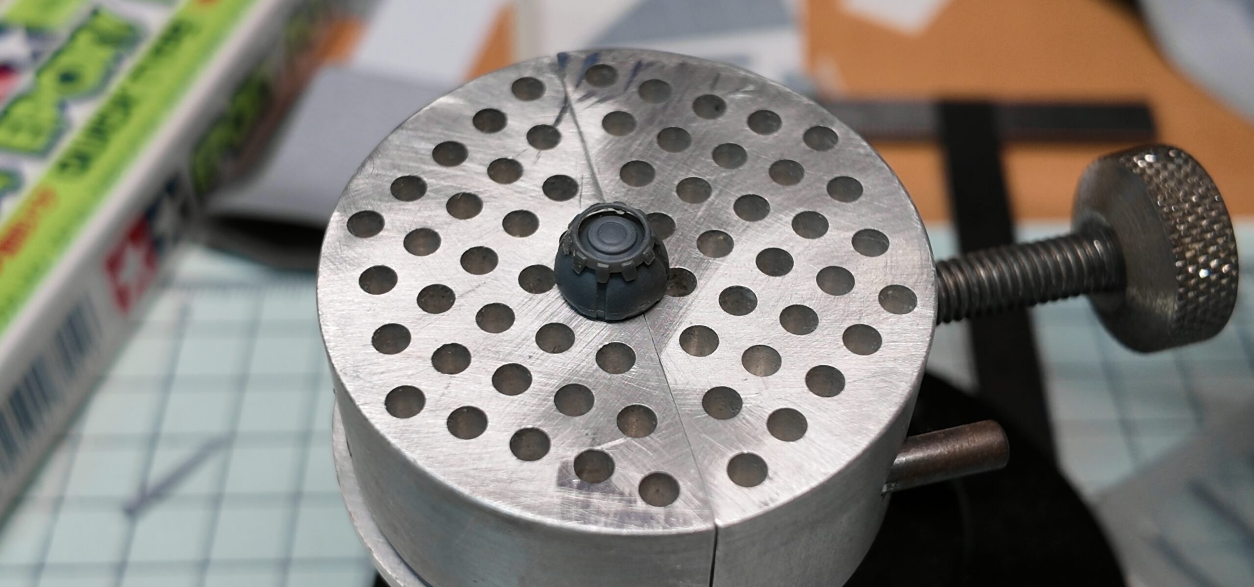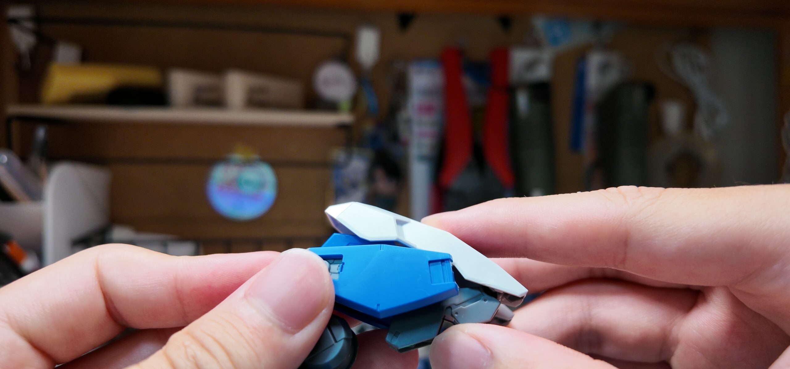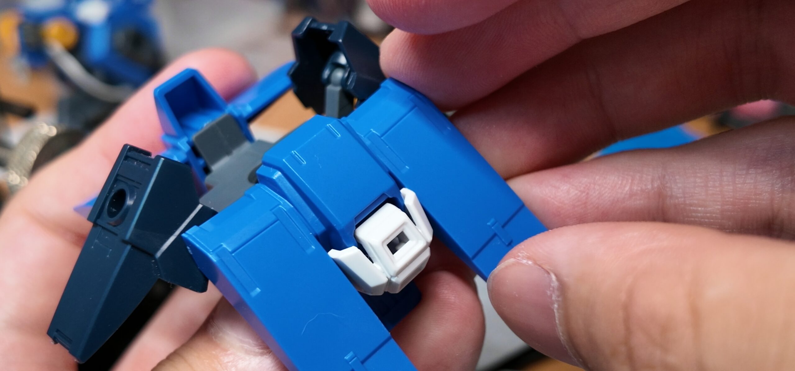 向きを90度変えて再接着。本家はもっと小さいものだったけど、股関節はかなり大胆に延長したいから、フレームの主張を抑えるために大きいものに変更。決してちょうどいいパーツが見つからなかった訳では無い。