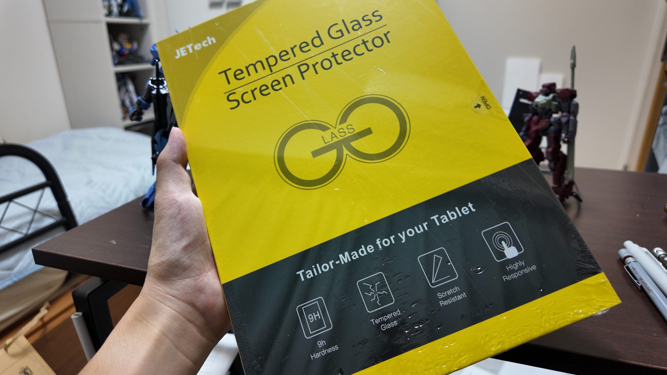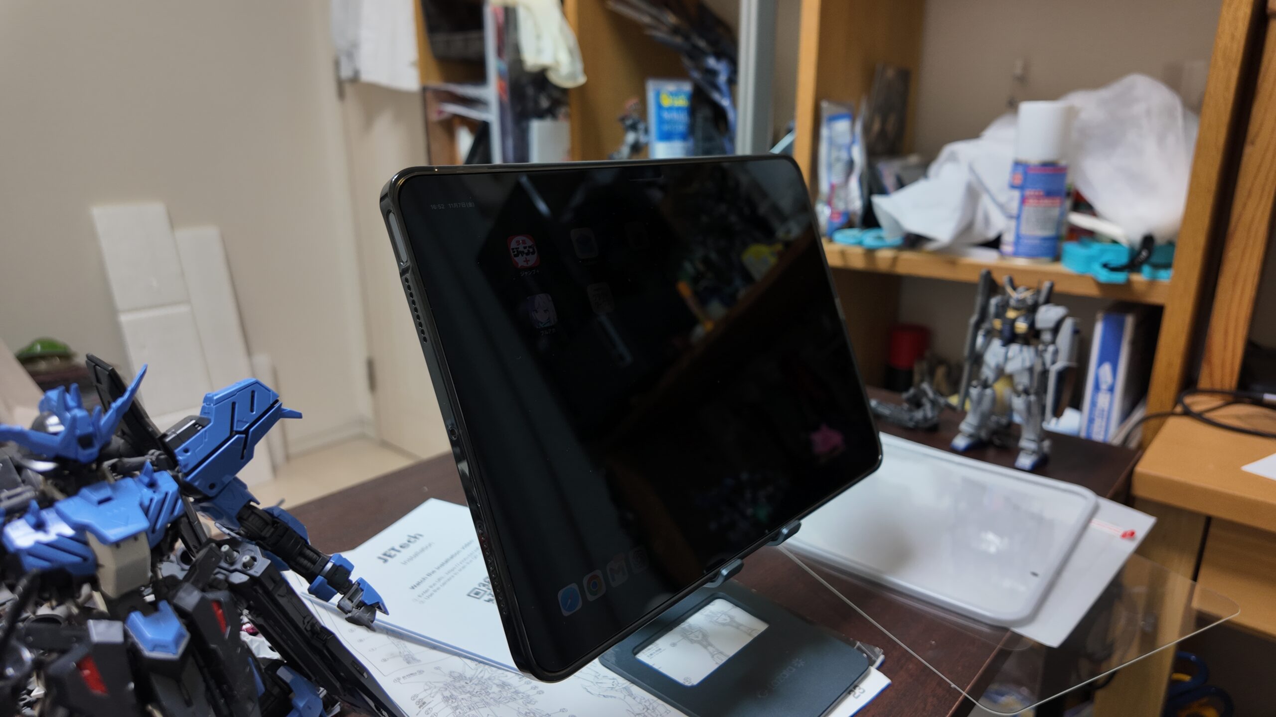 角度を変えると黒くなる点を除けば普通のガラスフィルム。なので結構厚みがある。僕みたいにipadでお絵描きする人は注意が必要。