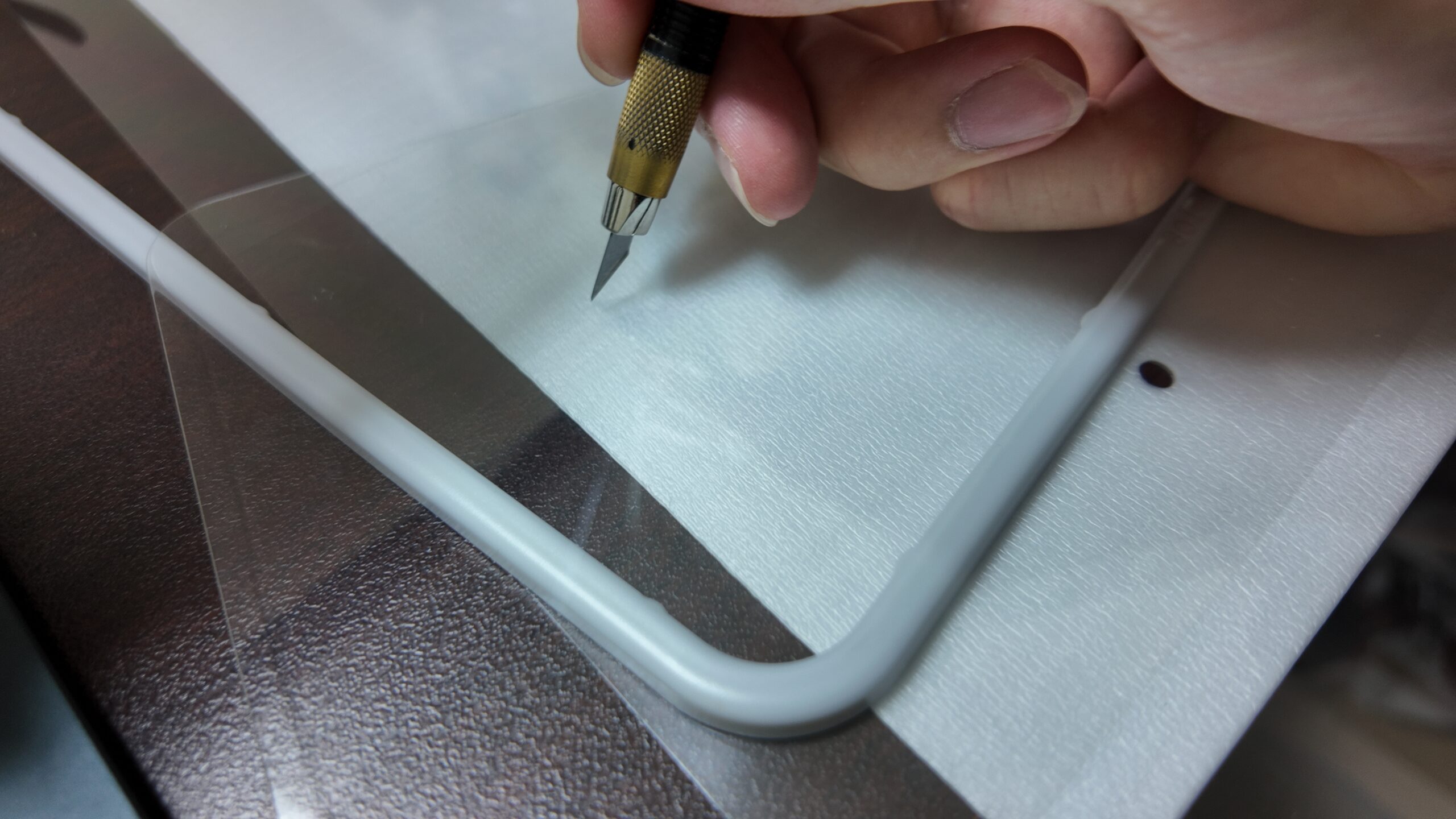 デザインナイフでがっつりなぞっても全く傷つかない。絶対つけるべき。