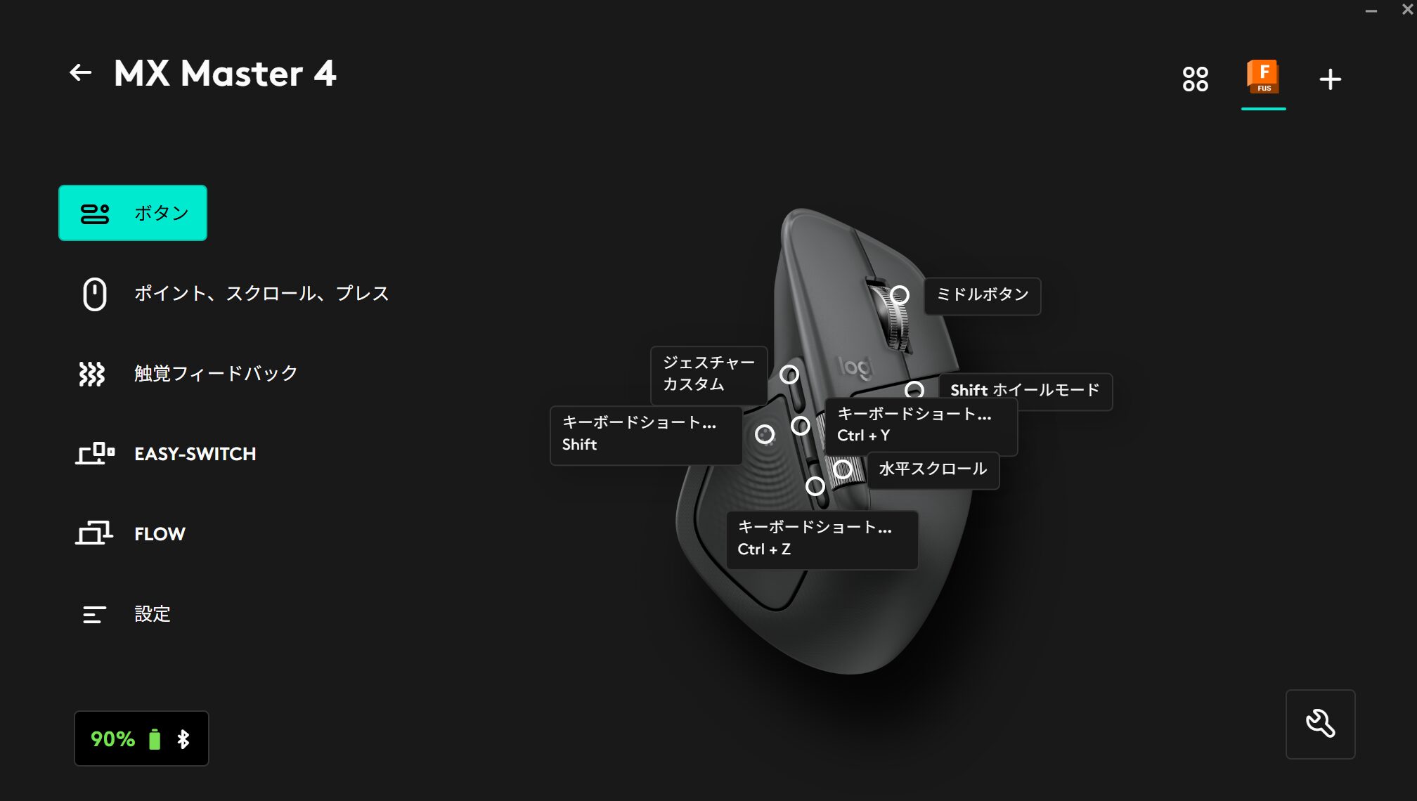 というのもfusion360はホイールの操作が非常に多く、長時間操作しているとカチカチという感覚が結構疲れてくる。というか初代マウスと比べてこのMX MASTER4はカチカチ感が強いから特に。